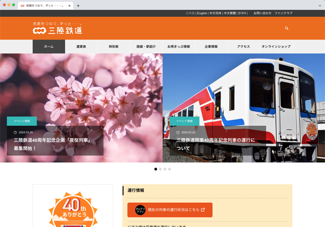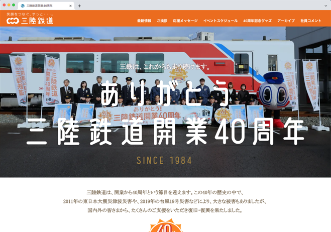 開業40周年を記念した特設サイト。東日本大震災津波災害や台風19号による災害など大きな災害もありましたが、国内外のみなさまからの支援や励ましに感謝を込めたサイトです。-